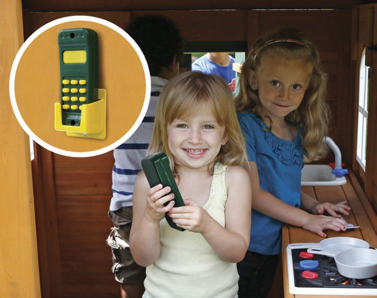 Производители оборудовали его всем необходимым для интересной игры: доской для рисунков мелом и скамейкой, игрушечным телефоном, яркими горшками с цветами, пластиковой кухонной утварью, лимонадной стойкой.