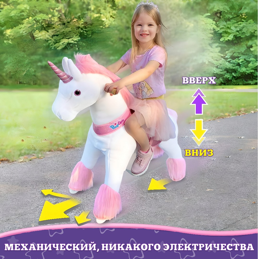 Представьте себе, что было бы, если Ваш ребенок сможет прокатиться на сказочном существе? Какие эмоции будут испытывать наши дети? Больше не нужно гадать, представляем Вашему вниманию механическую лошадку PonyCycle (поницикл) "Единорог" розовый. Эта мифическая лошадь не просто качается, но еще дети могут кататься на ней... Научиться кататься и управлять лошадкой очень просто - прыгайте вверх и вниз на седле и вас ожидает большой сюрприз - вы действительно прокатитесь!